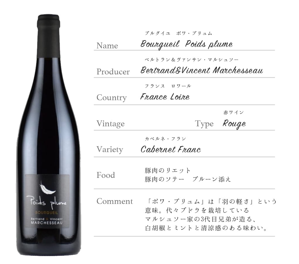 ブルグイユ ポワ・プリュムBourgueil Poids plume