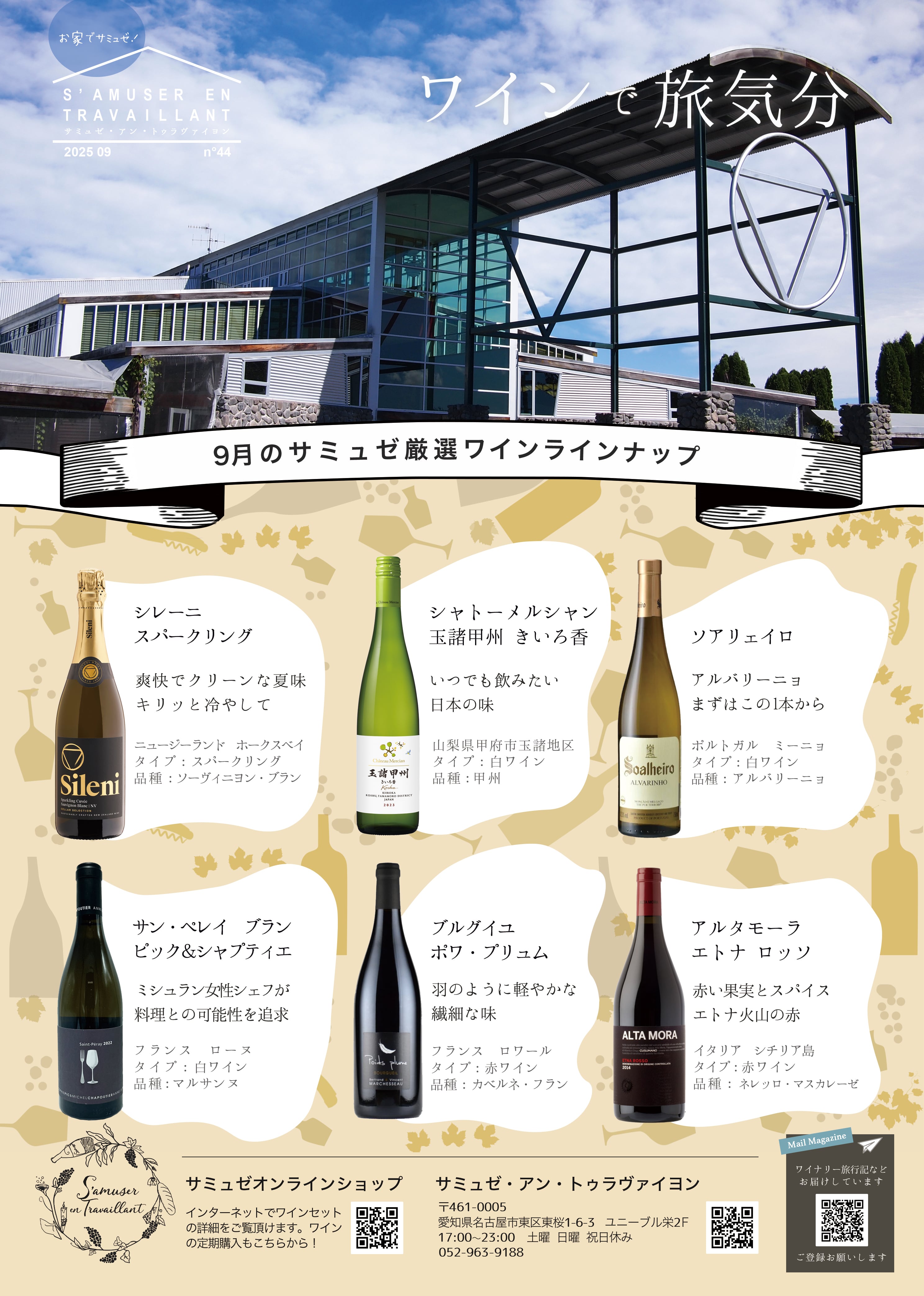 サミュゼのソムリエールが厳選したワインセットです。内容はお任せ下さい。毎月違うワインをお選びします。ワインを選ぶ手前もなく美味しいワインをご自宅でお楽しみ頂けます。