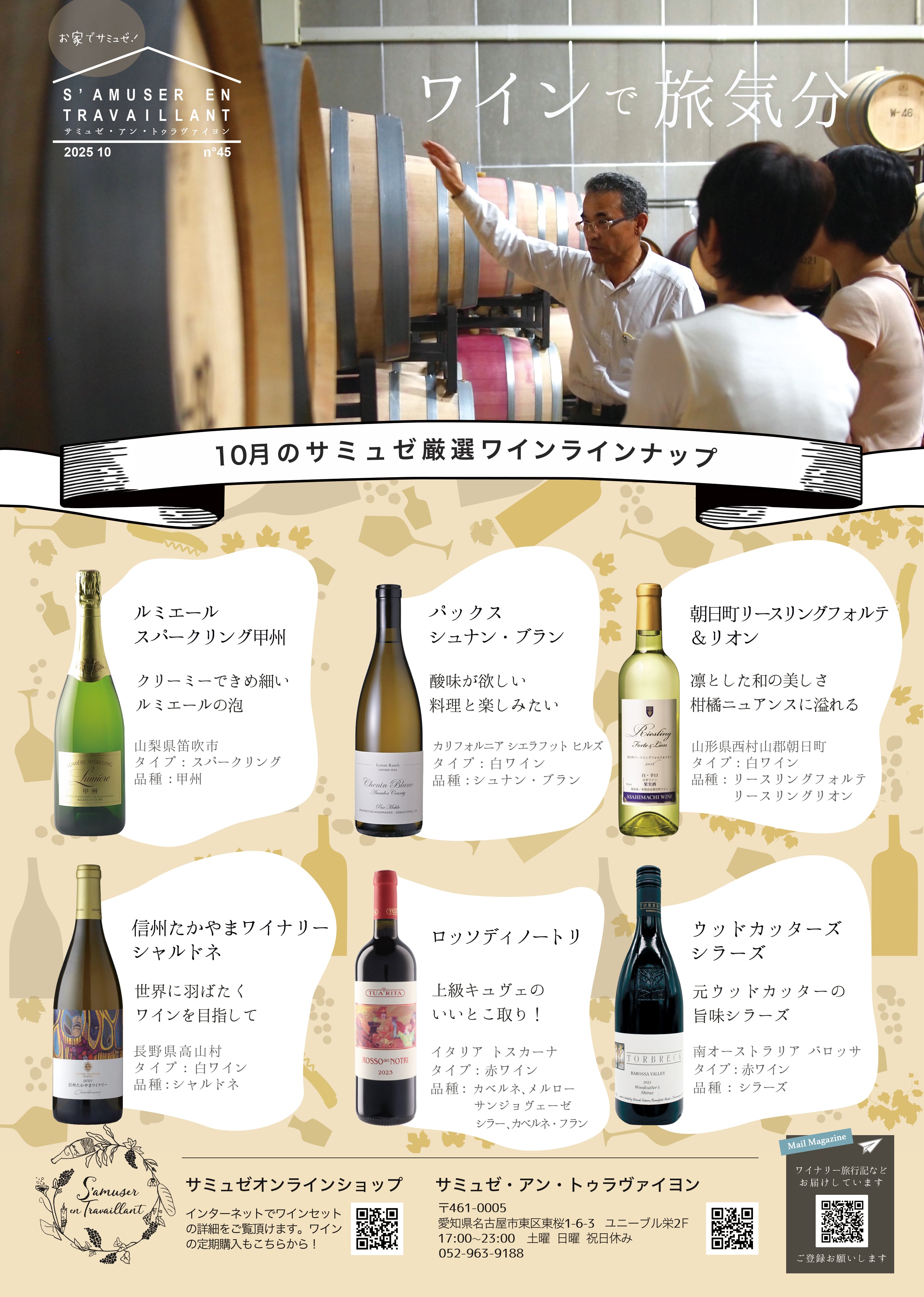 サミュゼのソムリエールが厳選したワインセットです。内容はお任せ下さい。毎月違うワインをお選びします。ワインを選ぶ手前もなく美味しいワインをご自宅でお楽しみ頂けます。
