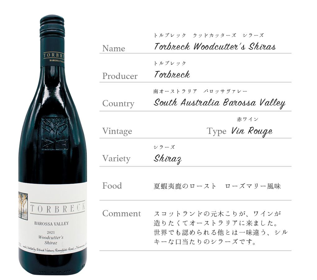 トルブレック ウッドカッターズ シラーズTorbreck Woodcutter’s Shiras