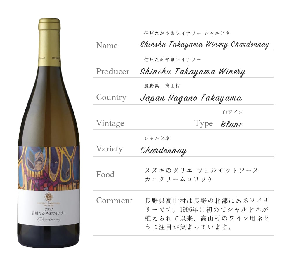 信州たかやまワイナリー シャルドネShinshu Takayama Winery Chardonnay