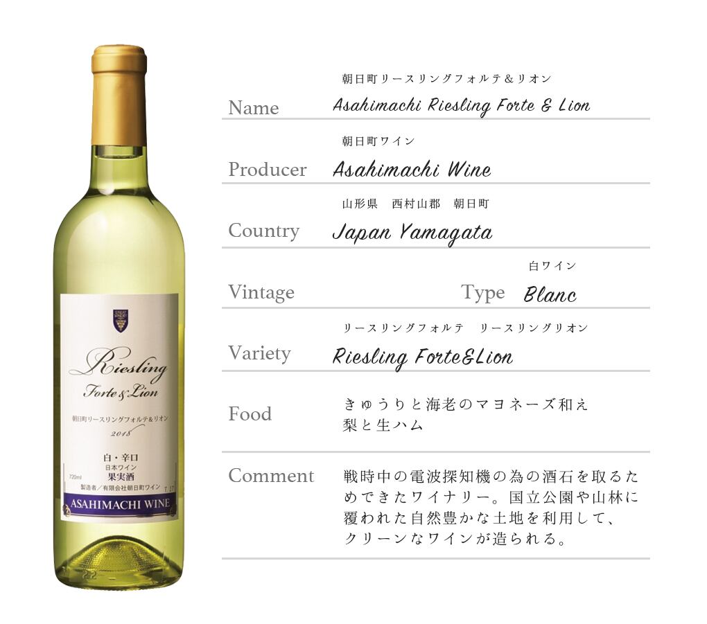 朝日町リースリングフォルテ&リオンAsahimachi Riesling Forte & Lion