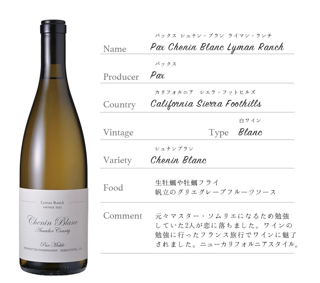パックス シュナン・ブラン ライマン・ランチPax Chenin Blanc Lyman Ranch