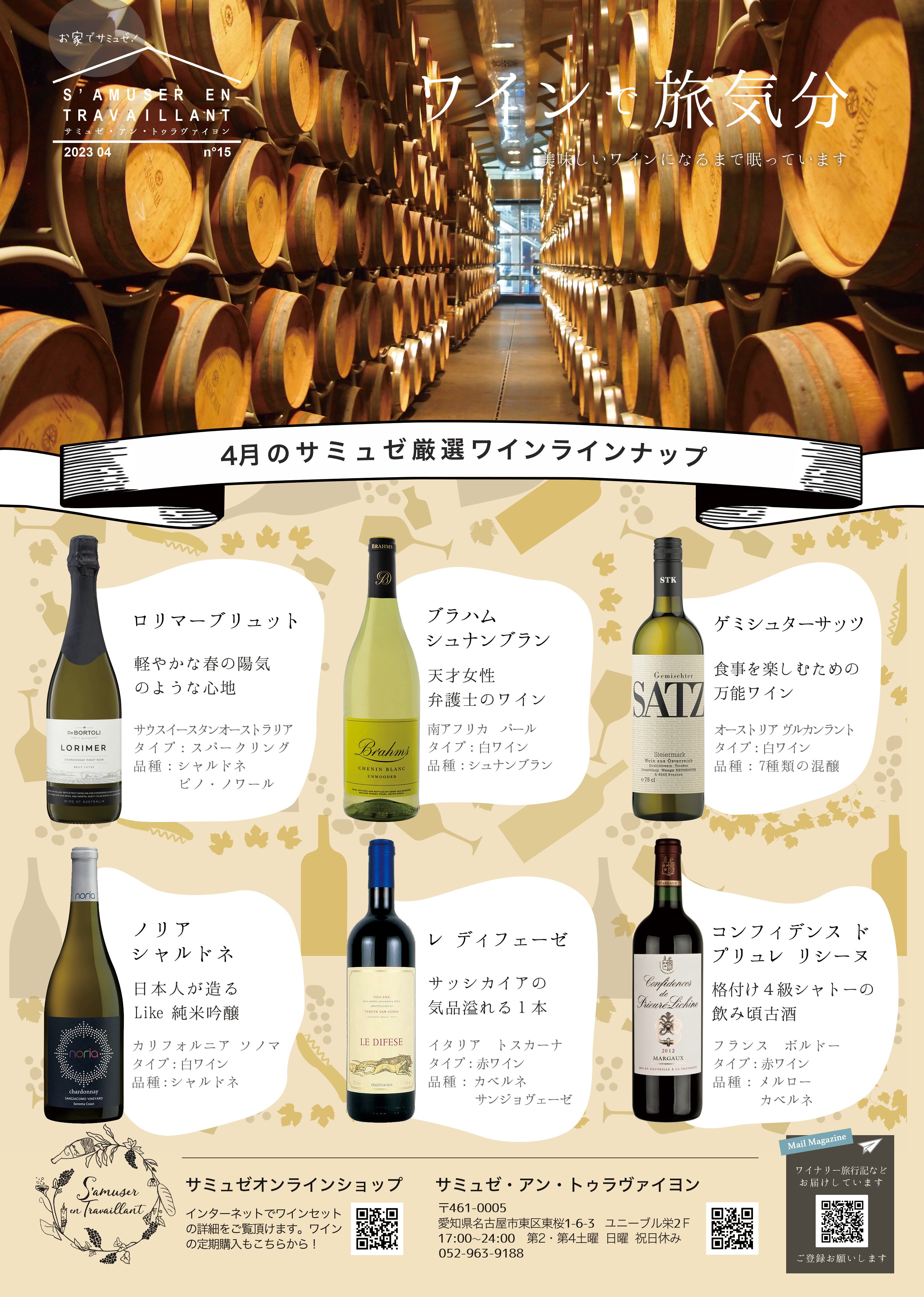 桜も散り始め、葉桜になってきました。待ち遠しかった春がきましたね。今月は春の清々しい時に飲みたいワインを入れています。飲みごたえのあるサッシカイアのサードワインや熟成ボルドーもお楽しみに。