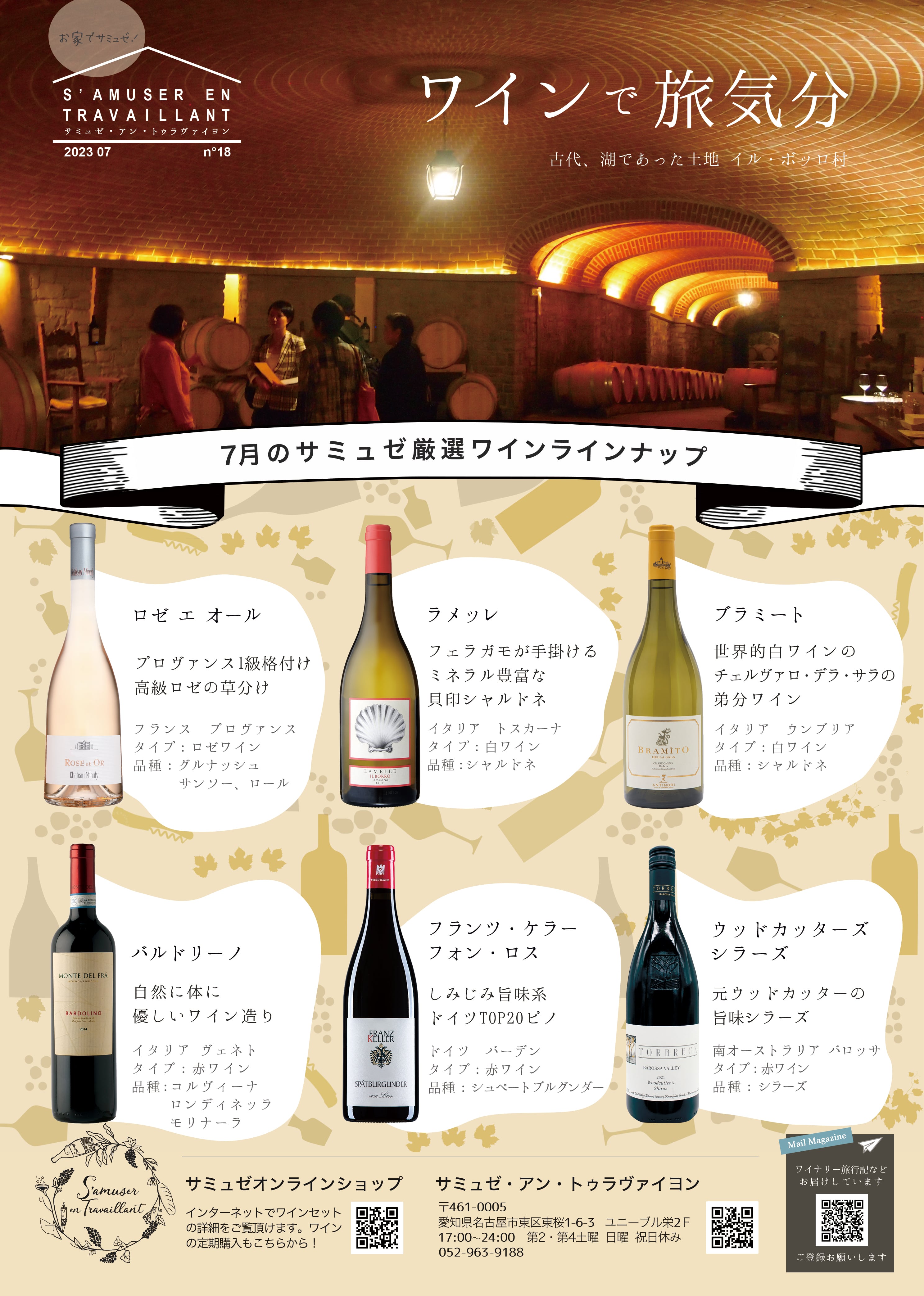 7月号は夏本番!といった夏の暑さを思い出させる暑い日が多くなります。軽やかでも軽すぎず、果実味ジューシーなワインを選んでいます。